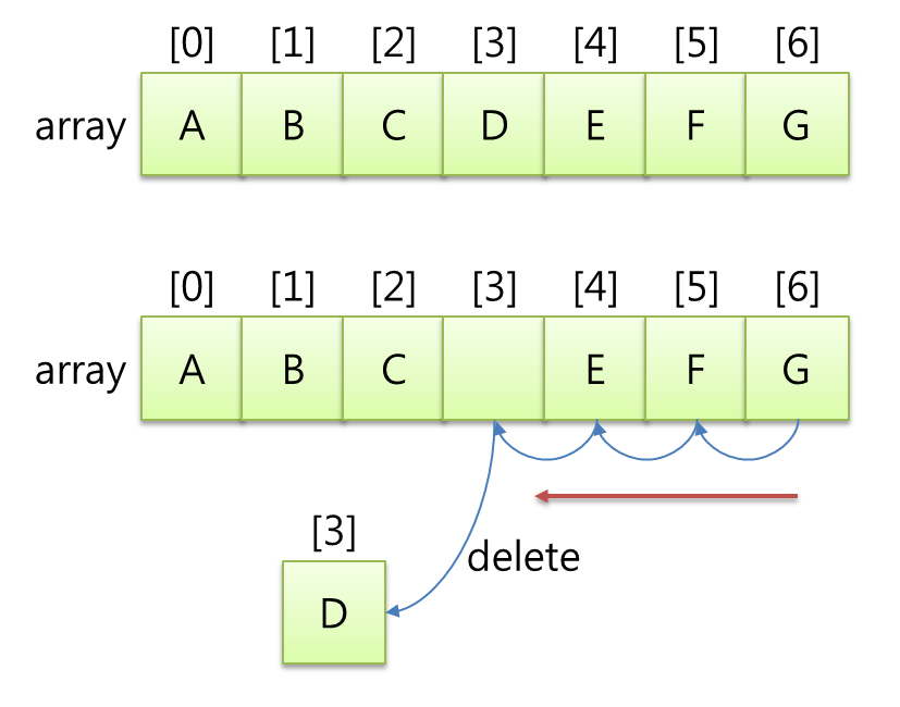- 삽입은 배열의 맨 뒤에서만 가능하기 때문이다.