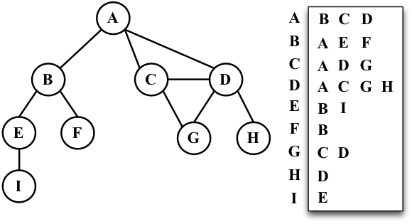 인접 리스트 (혹은 인접 목록)으로 그래프를 나타내는 방법은 단순하게 각 정점에 대해 자신과 연결된 정점을 2차원 배열의 형태로 나열한 목록이다.