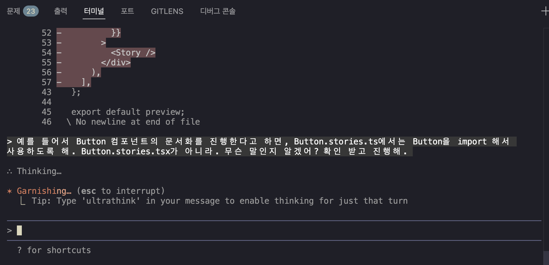 꾸짖을 갈 시전 3 - 2. 계속 .stories.ts를 .tsx로 바꾸고 싶어하는 claude code